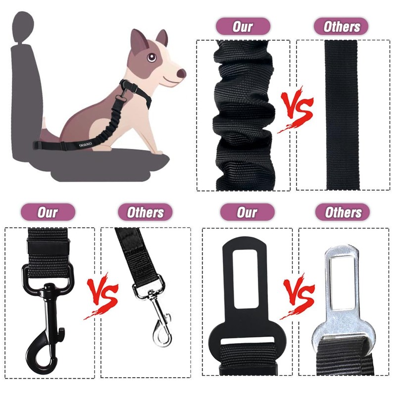 - ELASTIC BUFFER DESIGN - Featuring a durable elastic bungee buffer, our seat belt absorbs sudden movements and jerks while driving, reducing the risk of choking. This design allows your pet to move freely within a set space, ensuring greater comfort during the ride.