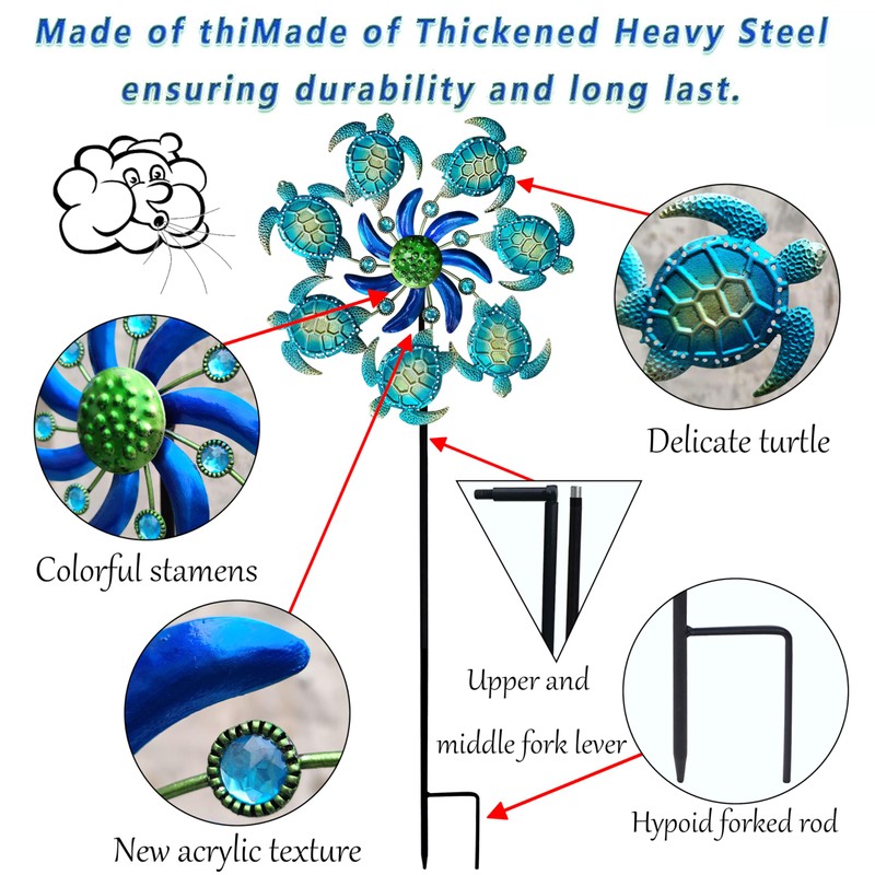 - 💎【Hilanderos de viento para patio y jardín】Molino de viento de metal con detalles vívidos de tortuga marina que ayuda a relajar tu estado de ánimo y añadir vitalidad a tu vida diaria, y añade un toque de ambiente a tu patio césped o jardín.