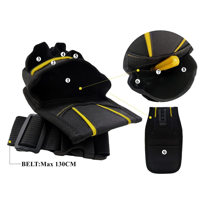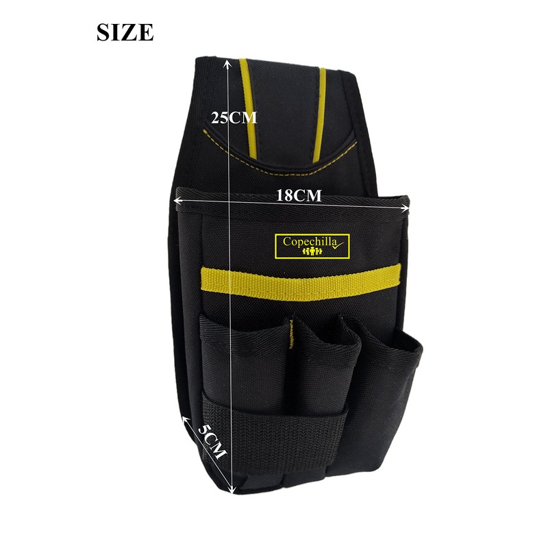 Copechilla Black Professional Tool Bag with Adjustable Belt and Belt Buckle, Strong and Wear-Resistant, Two-Layer Thick Nylon Material, for Families or Professionals