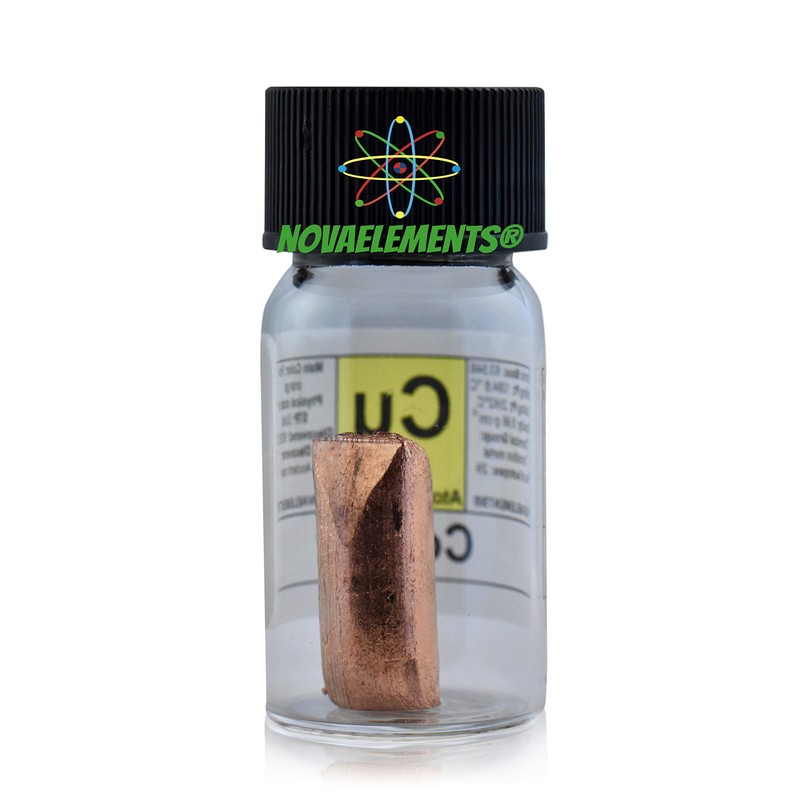 Copper Metallic Element 29 Cu, Cylinder > 8 g 99.99% in Glass Ampoule with Label