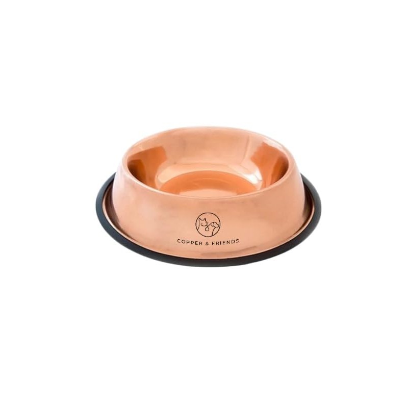 Copper Pet Water Bowl for Dogs or Cats I Non-Skid Rubber Base | Non-Spill Design | Non-Toxic | (Small - 450mL)