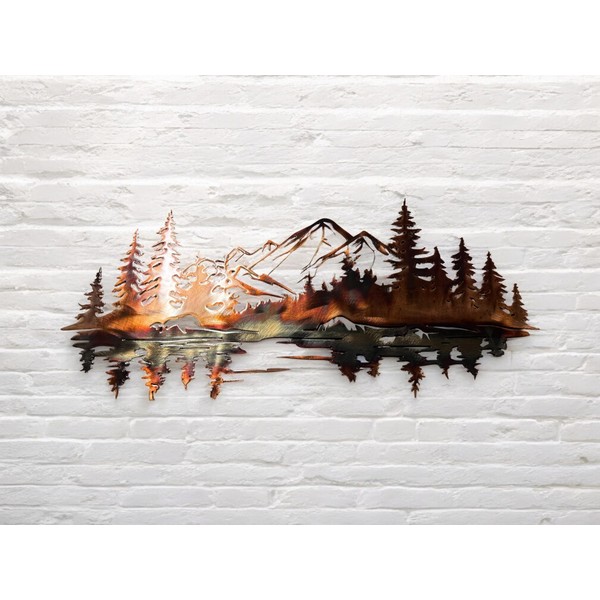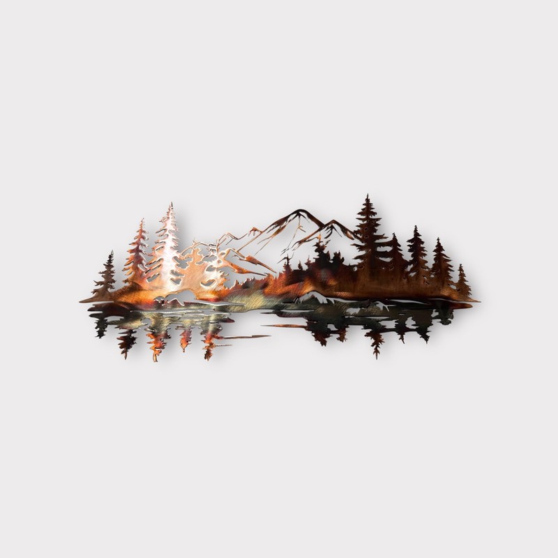 Copper Plated Mountain Reflections Metal Wall Art (26 1/4" x 12")