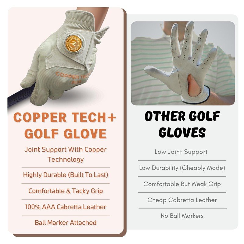 - [COPPER INFUSED COMPRESSION TECH] - With our advanced copper compression technology, copper tech golf glove for women provide you with the compression you need help reducing swelling and pressure, increase blood flow, and support joint & muscle stiffness & soreness while golfing.