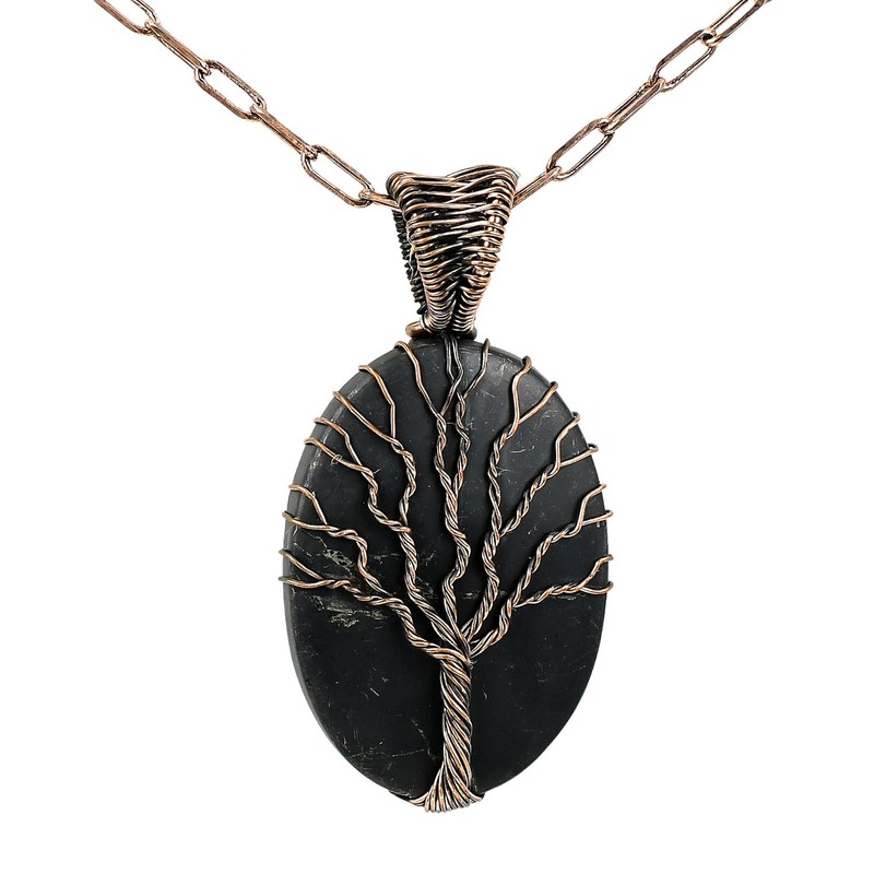 Copperie Tree Of Life Lab Created Gemstone Pendant Necklace (Shungite)