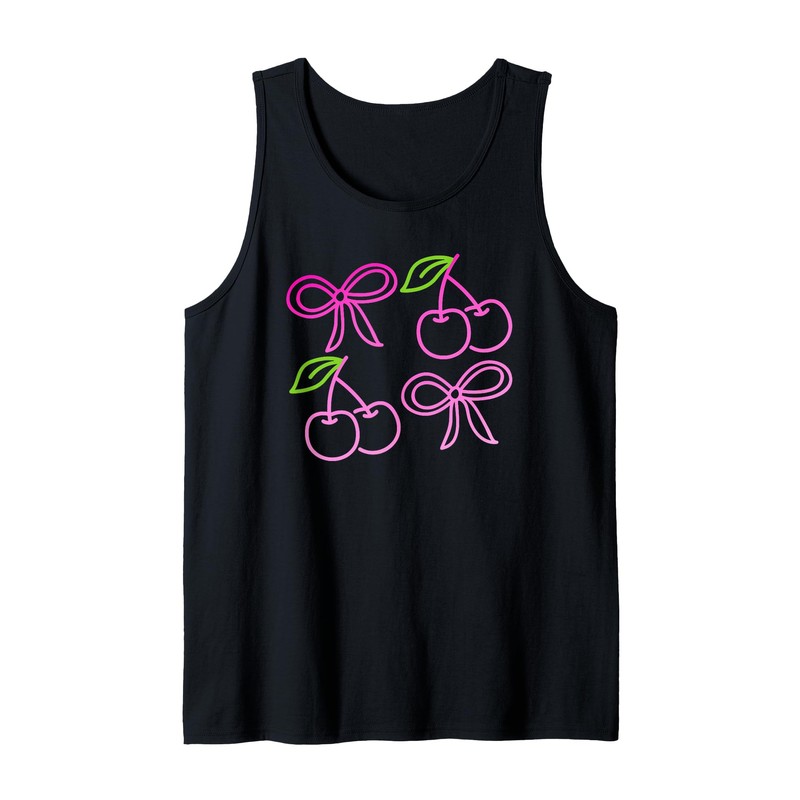 Coquette Bows Cute Pink Cherries Y2K Girly Summer Tank Top