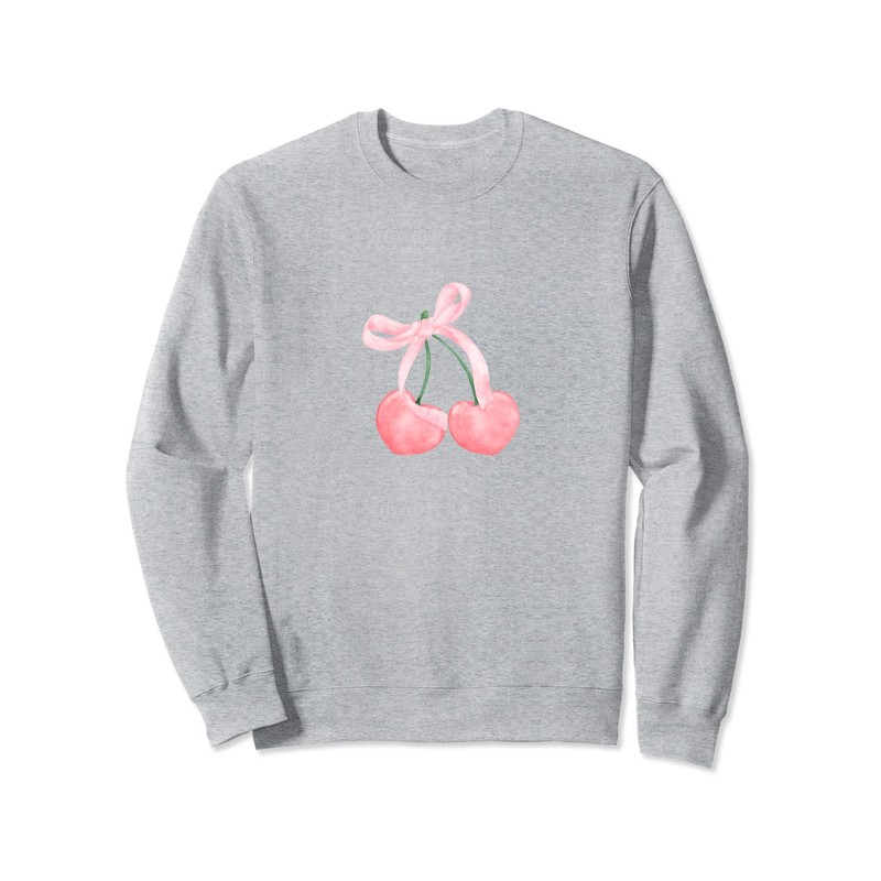Coquette Cute Cherry Bow Pink Sweatshirt