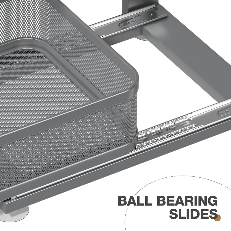 Corbyles 2 Pack 15.5IN-Depth Under Sink Organizer With Next-Gen Ball-Bearing Slides,2-Tier Precision Mesh Pull Out Cabinet Storage for Bathroom&Kitchen,Height Adjustable Drawers Shelf,Anti-rust-Grey