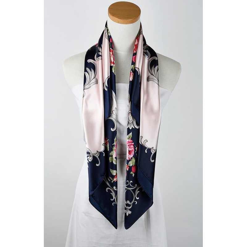 Corciova 35 x 35 Large Women Satin Square Silk Like Hair Scarf Wrap Headscarf Pink Oxford Blue Flower Curly Headband Bandana