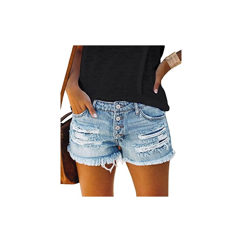 - Design:Causal Jean Shorts for Womens.Feature Ripped Distressed Jean Short,Cut off Denim Short,High Waisted,Washed,Moderate fit,Traditional 5 Pockets,There are not only button plackets, but also zipper plackets with Button Closure. Womens Jean Shorts for Summer,Spring and Fall.