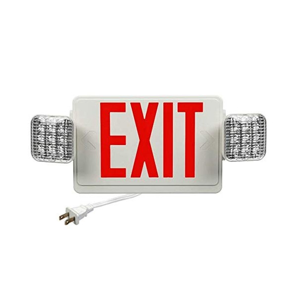 * Easily plugs into the wall using the factory installed 10-foot cord. * 2 for 1 solution combines a LED exit sign with (2) LED emergency lights. * Includes one (1) faceplate, one (1) backplate