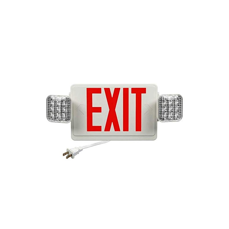This 2 for 1 solution combines an exit sign with a set of emergency lights into a single fixture and it also eliminates the need to hire an electrician by being able to plug-in. The thermoplastic housing is flame retardant and the letters are red. The unit only consumes 3.1 watts of electricity per cycle when activated, and draws nearly zero power when AC current is flowing through the circuit. Best of all, you will never have to replace the bulbs during the entire lifespan of the unit! The **Corded Exit Sign Combo** fits in all types of interiors, from commercial to retail to residential.