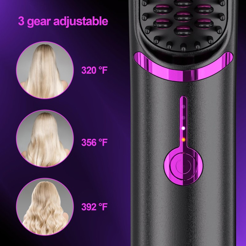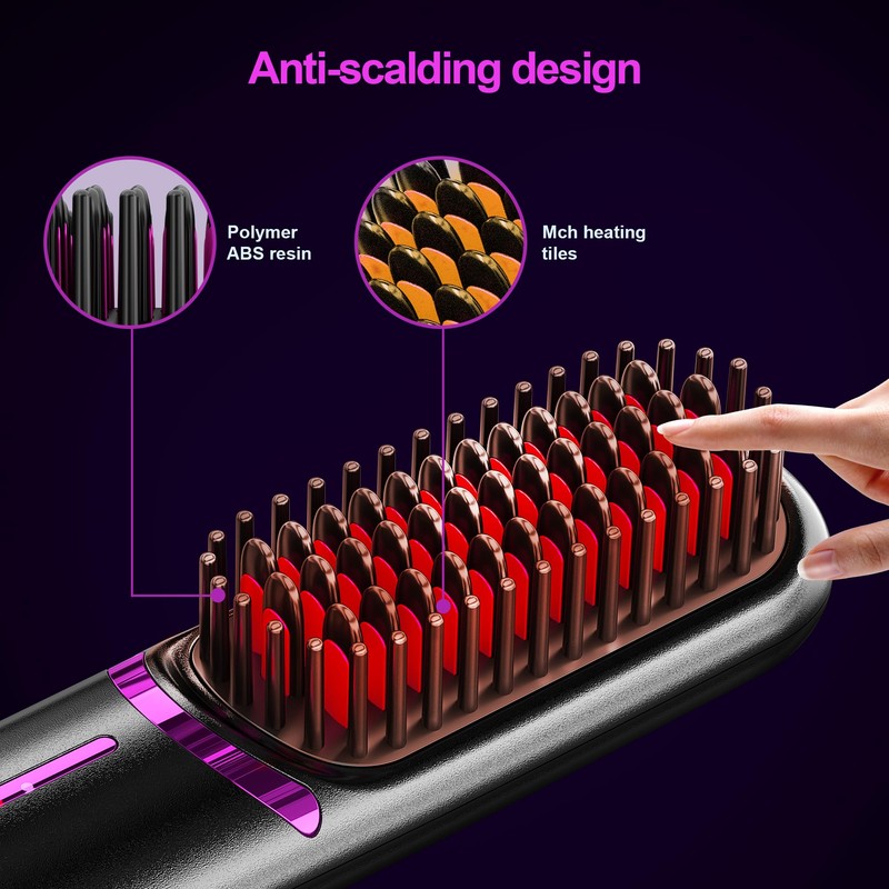 - Cordless Convenience: Experience the freedom to style your hair anywhere, anytime with our cordless hair straightener brush. No more dealing with tangled cords or searching for a power outlet – enjoy the flexibility of styling on the go. Whether you're traveling, at the office, or getting ready for a night out, our cordless design ensures hassle-free hair styling wherever life takes you