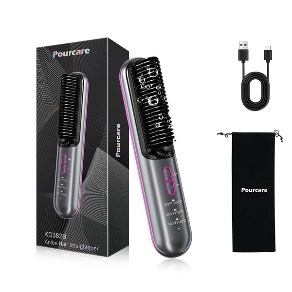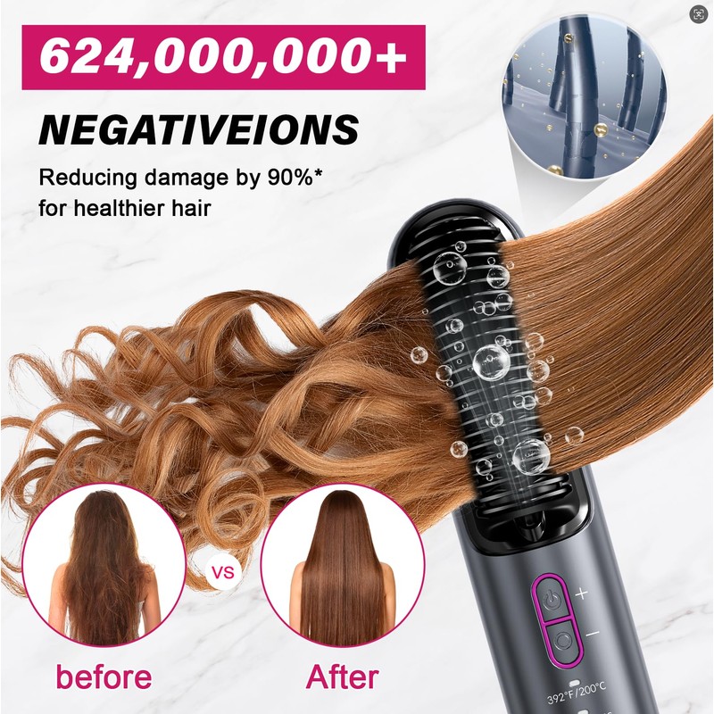 Cordless Hair Straightener Brush, Travel Mini Hot Comb 3 Temps Settings 320°F to 392°F 20s Fast Heating,Negative Ionic for Smooth Frizz-Free Hair