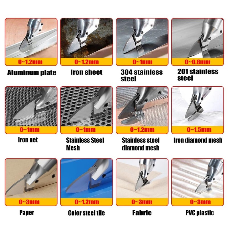 - Versatile cutting capabilities: The electric metal shears are capable of cutting materials up to 18GA, With a maximum torque of 133 Ft-Lbs and a shearing steel capacity of 0.1 inch.