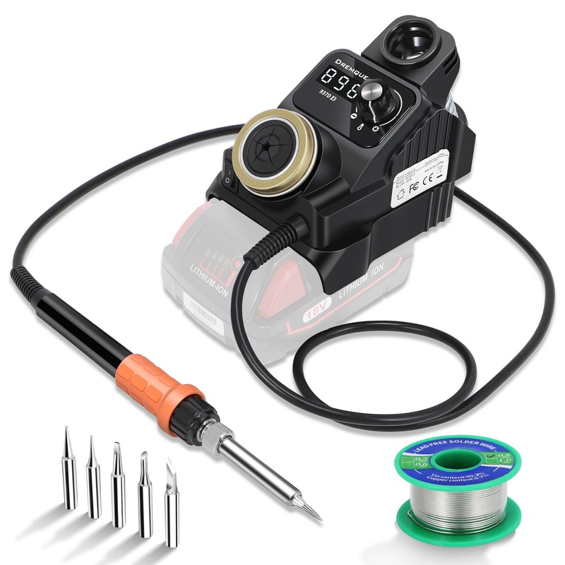 This cordless soldering station is compatible with Milwaukee 18V batteries (battery not included), giving you the freedom to work anywhere without power cords. It heats up quickly with a wide adjustable range of 392°F to 896°F, and maintains stable temperature thanks to PID control.