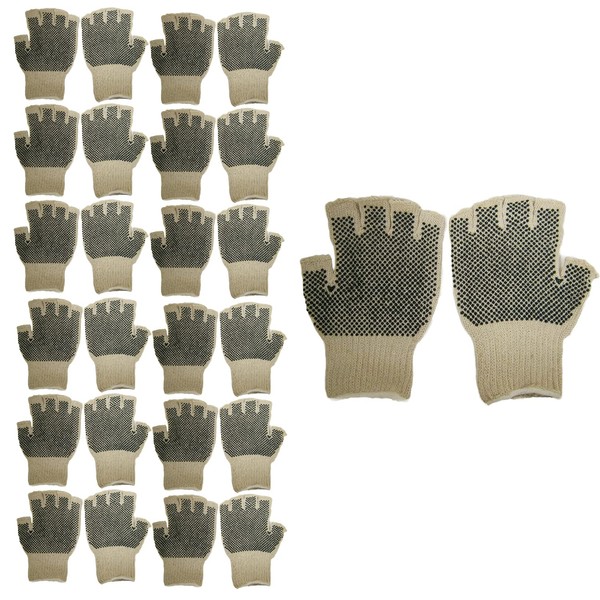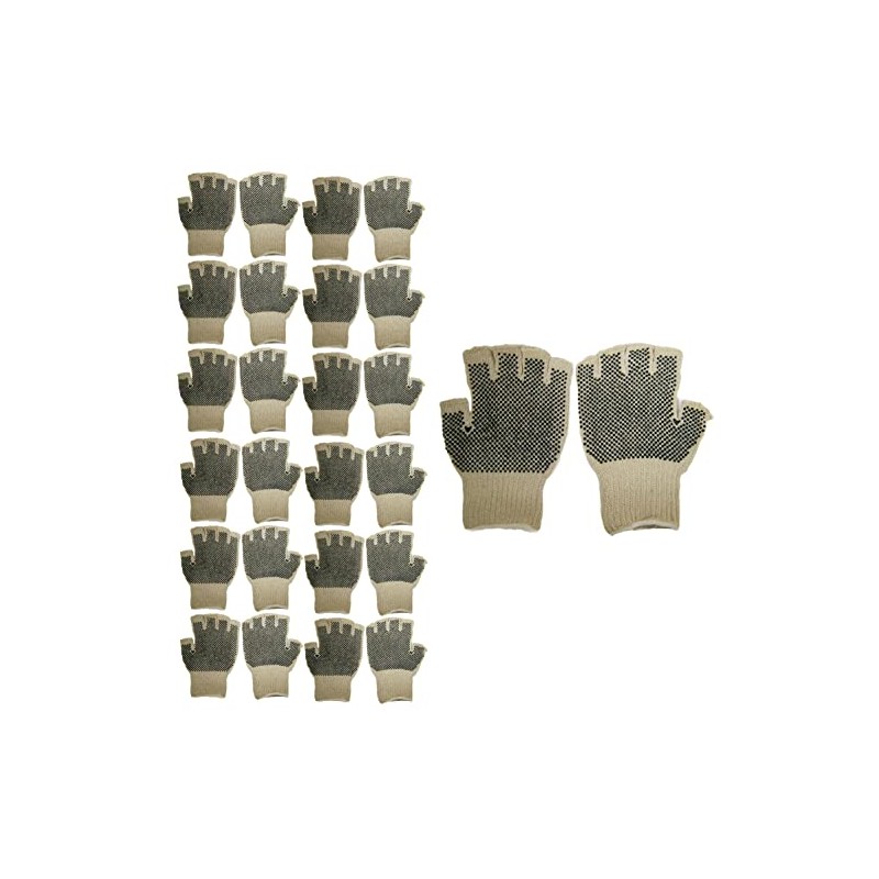 Cordova 3856L Standard Weight Gloves, Fingerless, Natural, Poly/Cotton Machine Knit, 2-Side PVC Dots, Large, 12-Pack