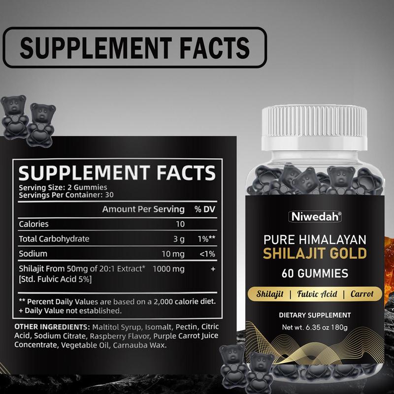 Cordyceps and Shilajit Gold Gummies, 60 Gummies – Enriched with Fulvic Acid, Essential Minerals & Carrot Extract | Nutritional Support for Men and Women