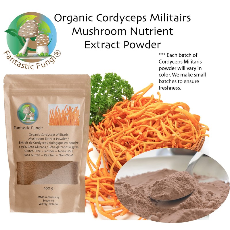 Cordyceps(Cordyceps Militaris) extract powder-36 grams-1 month supply-Fantastic Fungi® powdered organic, Cordyceps Militaris mushroom - Concentrated 100:1 Cordyceps extract powder ready to use