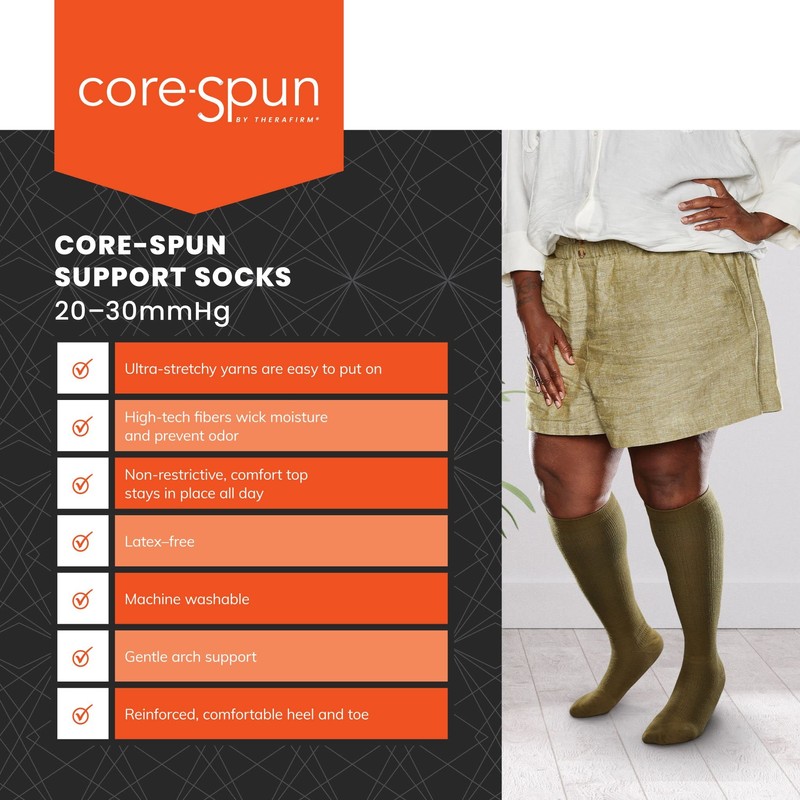 CoreSpun Everyday Compression Socks for men & women looking to relieve tired, swollen, achy legs or perhaps a necessity recommended by a doctor. They look and feel like a soft, comfortable everyday sock with the added benefit of true gradient compression.