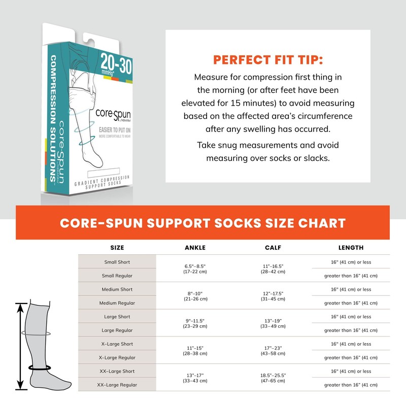 The high-tech core-spun yarns (hence the name) make these compression socks easier to get on - no more struggling, pulling or tugging on your compression socks!