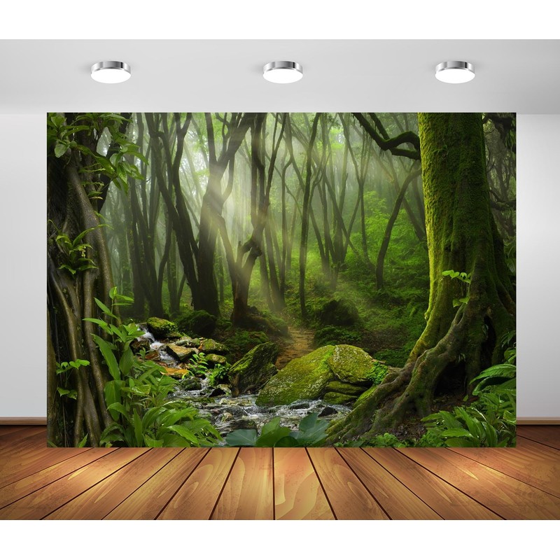 CORFOTO 2.1x1.5m Tropical Jungle Forest Backdrop Jungle Forest Photography Backdrop Tropical Rainforest Natural Scenery Background Safari Theme Party Backdrop Banner Studio Props