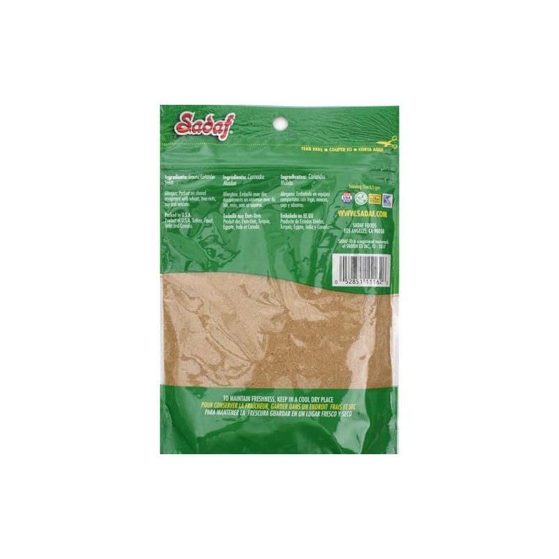 Sadaf Coriander Seeds Ground - Coriander Seeds Powder for Cooking and Food Flavoring - Mediterranean Cuisine - Semilla de Cilantro - Kosher - 4 Oz Resealable Bag