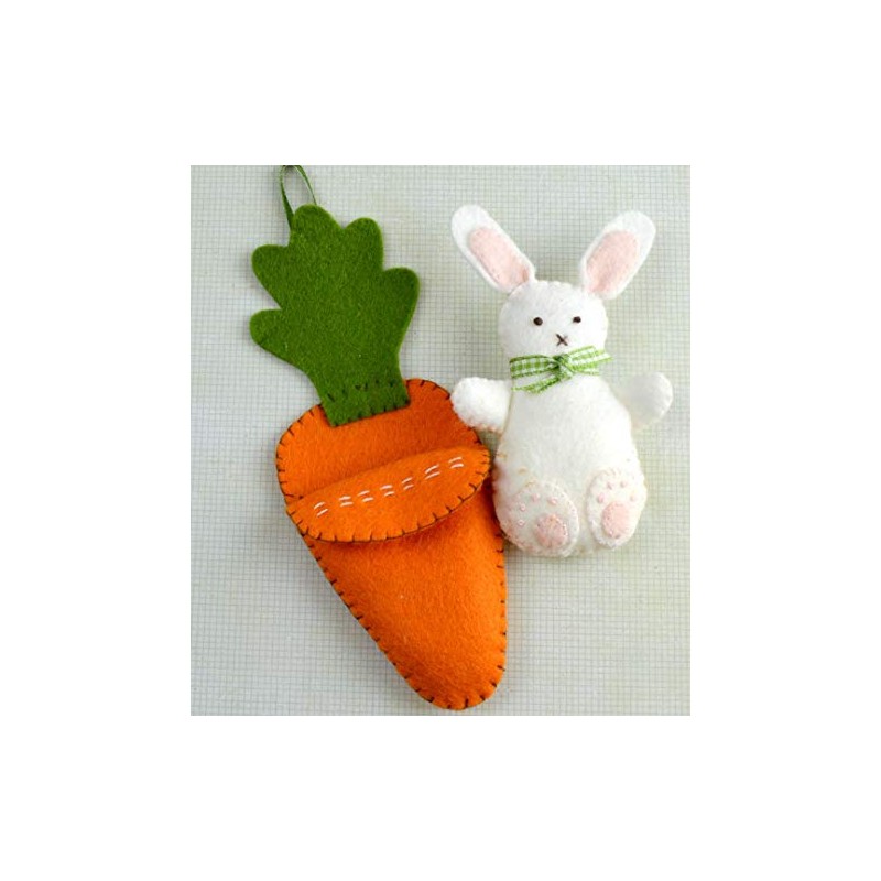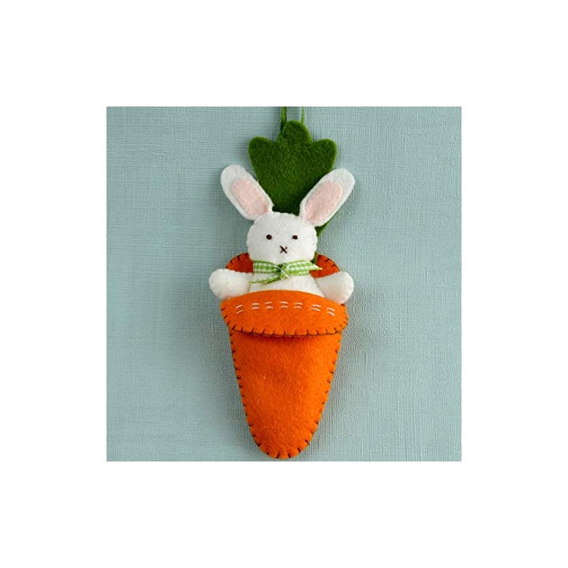 • Our irresistible Bunny in his Carrot Bed mini craft kit contains everything you need to make one felt hanging decoration. He loves to snuggle up in his carroty bed or sometimes uses it to hide his stash of chocolates.