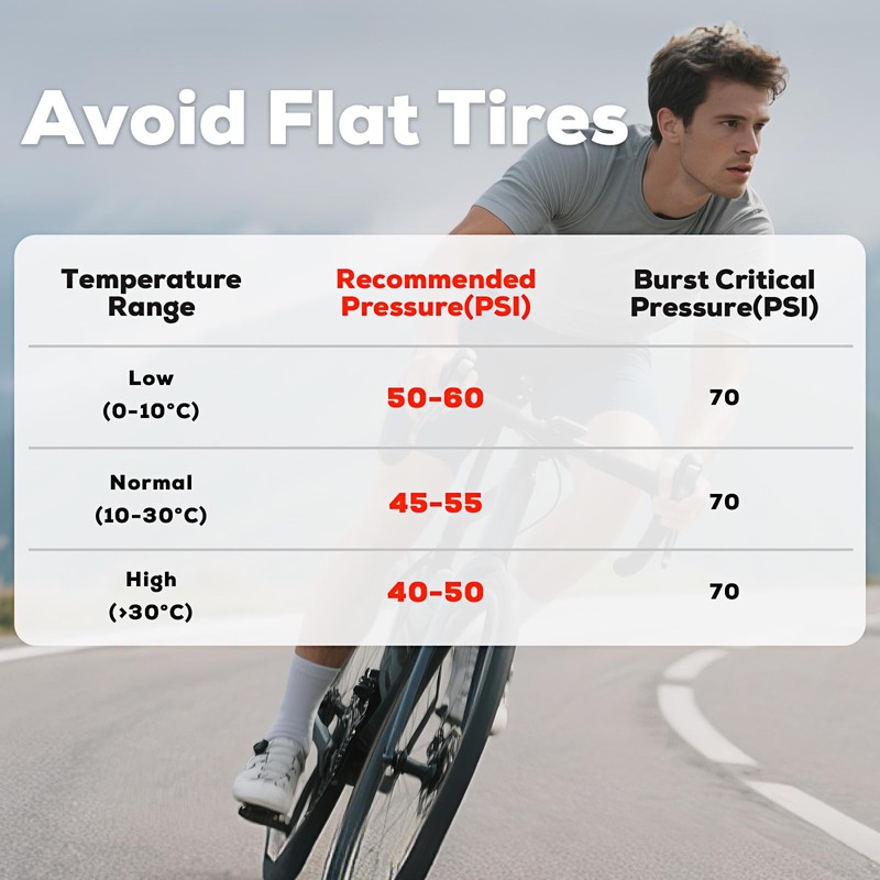 - 🛡️𝐀𝐯𝐨𝐢𝐝 𝐅𝐥𝐚𝐭 𝐓𝐢𝐫𝐞𝐬: Always check your tire's Min/Max PSI on the sidewall first! These tire tubes are made for 700c tires 35-43c. Keep your tires at the recommended 40-70 PSI to prevent blowouts and avoid the risks of under- or over-inflation.