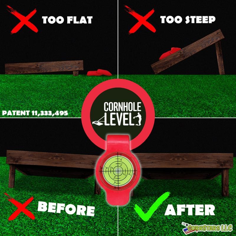 Are you tired of playing cornhole on uneven surfaces, struggling with tilted boards, and missing your target? It's time to take your corn hole game to the next level with our innovative Corn hole Level Tool by CornStars LLC. This precision device or tool is designed to be the ultimate accessory for any cornhole enthusiast, from casual players to seasoned pros.  It also makes the perfect gift or present for anyone of all Levels of Cornhole gameplay!