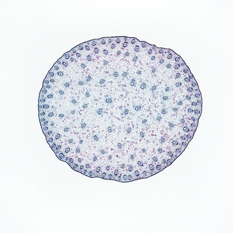 - Microscope slide showing a cross section of corn (Zea) stem