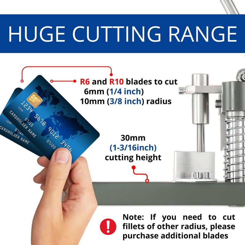 - The corner rounder heavy duty is made of high-quality A3 steel and has a super sharp and tough cutting blade. It can cut 6 mm or 10 mm radius, the cutting range is 30 mm. Built to last, the rounded corner punch ensures smooth operation while handling multiple sheets or thicker materials, such as cardstock or heavy paper