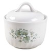 Sugar Bowl & Lid in the Callaway (Corelle) pattern by Corelle. Corelle, Green Leaves/Vines,Swirl Rim 4 1/4