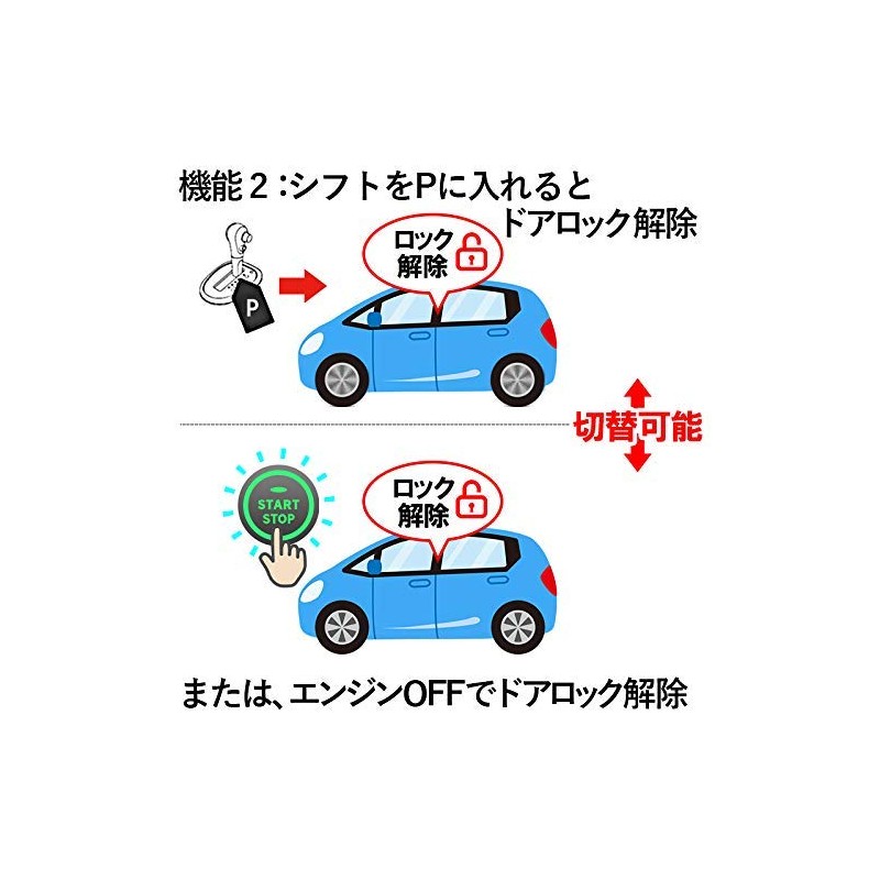 • 2. When you put the shift in P after stop, the door lock can be unlocked with the engine off; Switch function is available. Manual shift car cannot be used with "unlock door with P shift". Set to unlock the engine when the engine is off. Also, when you set it to unlock it with the P shift, it will activate the engine off