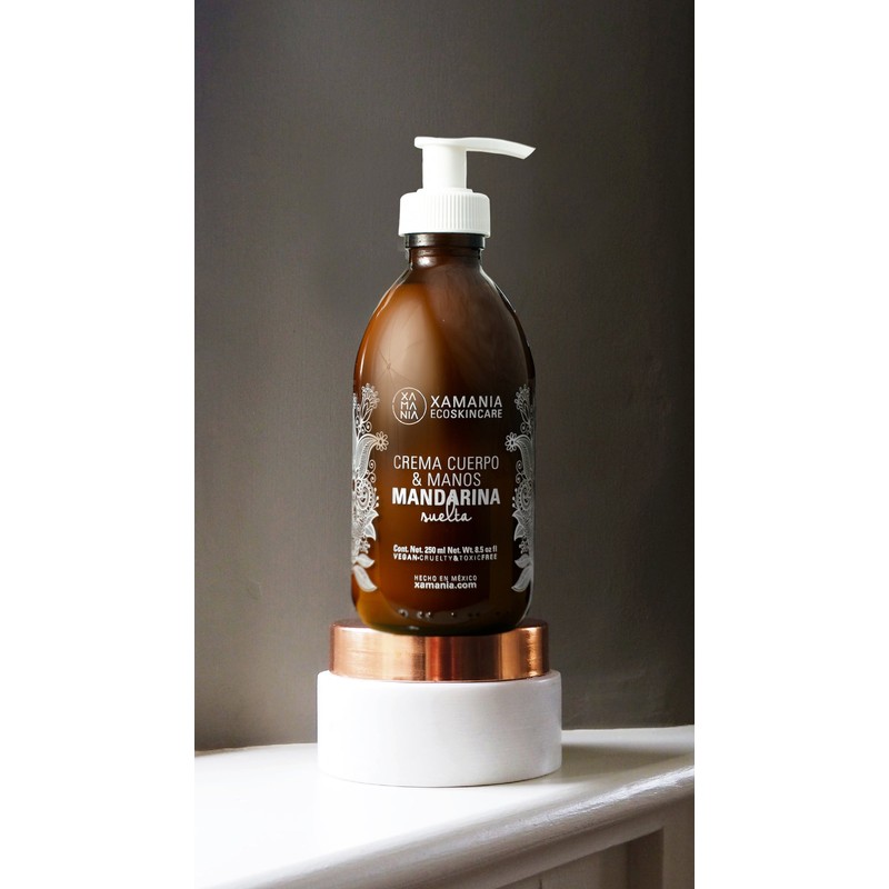 Humecta la piel de tus manos y cuerpo con esta deliciosa y suave crema corporal natural con almendras y mandarina y toronja.