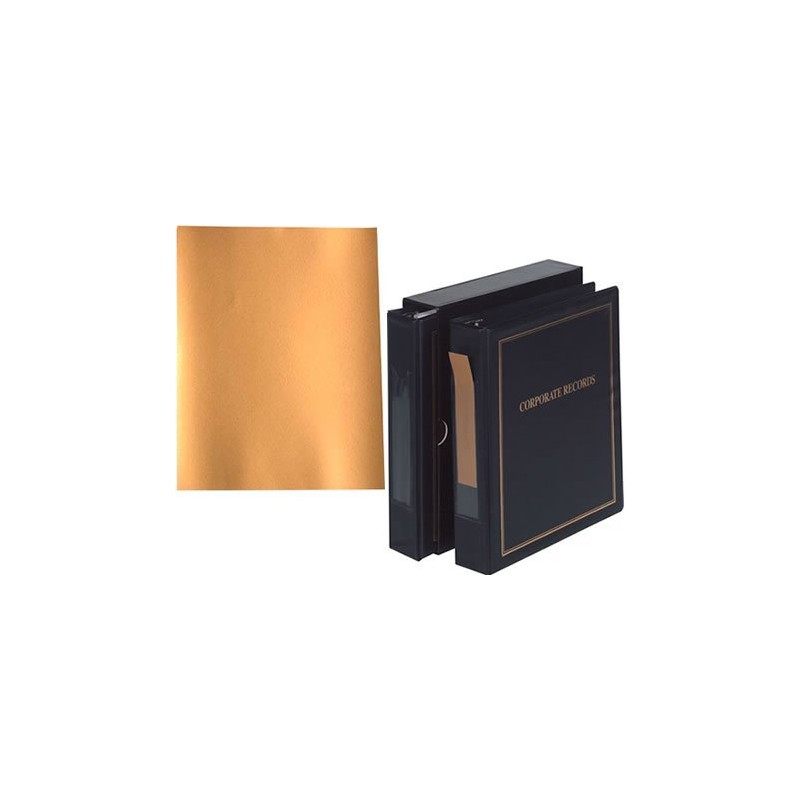 - Vinyl 3 "D Ring" binder detailed in gold. Available in Black or Burgundy