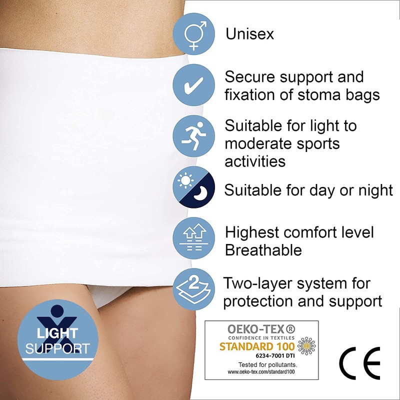 - SOFT and STRETCHY garment with inner pocket for safe, secure retention of all types of ostomy pouches and drainage bags