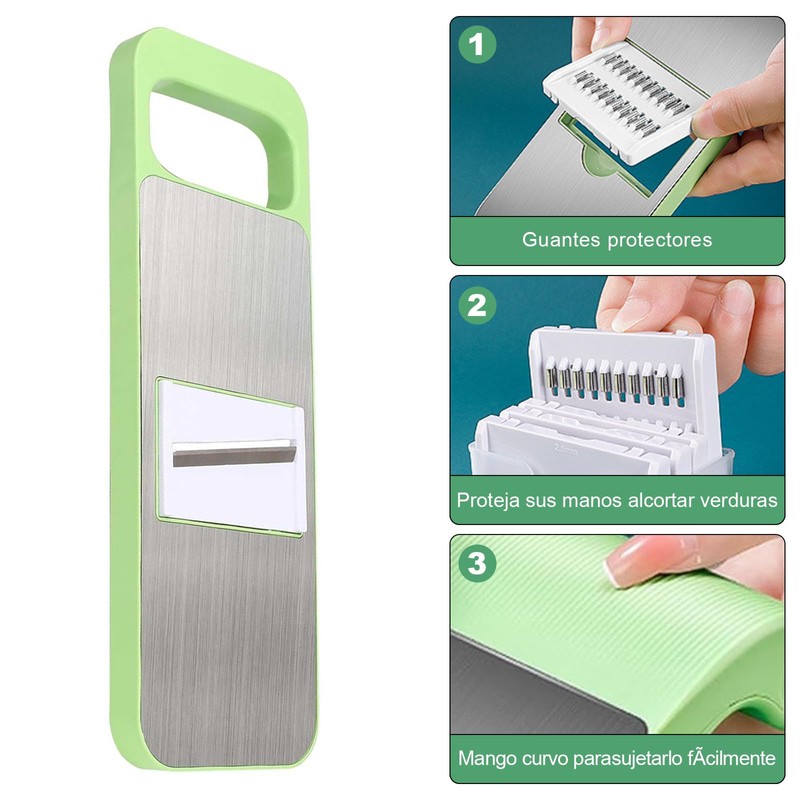 Cortador de Verduras, Rebanador de Verduras con 5 Vuchillas de acero inoxidable, Mandolina Multifuncional para Cocina, Ensaladas y hogar - Diseño ergonómico, Seguro y fácil de Limpiar