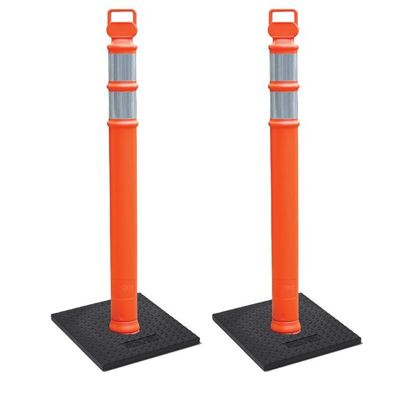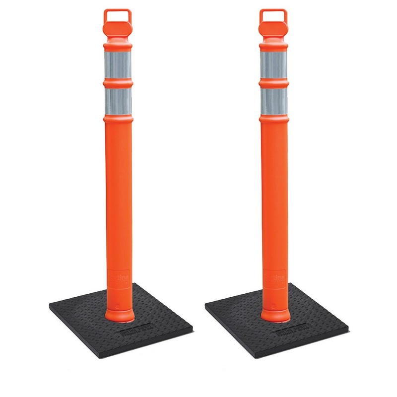 Cortina EZ Grab Delineator 45" Post, 3" Hip Collars with 10 lb Base, 03-747RBC-2, Orange, 2 Pack