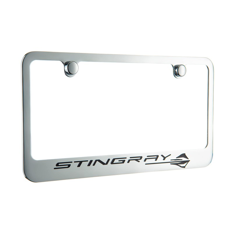 - Triple chrome plated solid brass engraved license frame. Correct Corvette C8 stingray logo and trademark.