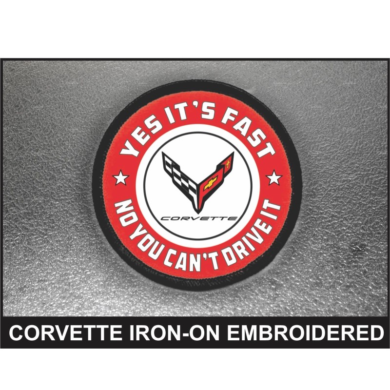 Rev up your style with these large 3" x 3" iron-on Corvette generation patches! From the sleek C1 to the modern C8, each patch features a vibrant, full-color model logo design that reads, "Yes, it's fast, No, you can't drive it." Perfectly crafted for Corvette enthusiasts, each patch has a durable embroidered edge for a sharp, long-lasting finish.