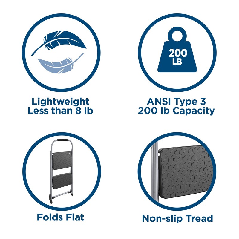 COSCO 2-Step Big Step, Steel Step Stool, Gray