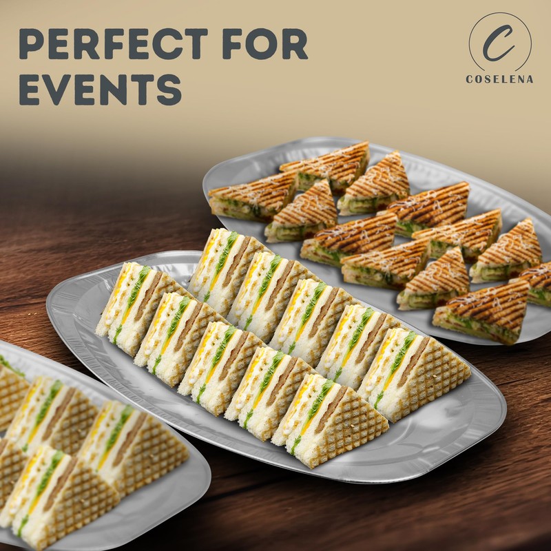 Coselena Foil Trays 14 Inch (Pack of 20) - Durable Aluminium Serving Platters for Catering, Parties, and Events - Ideal Sandwich Platter Trays for Gatherings