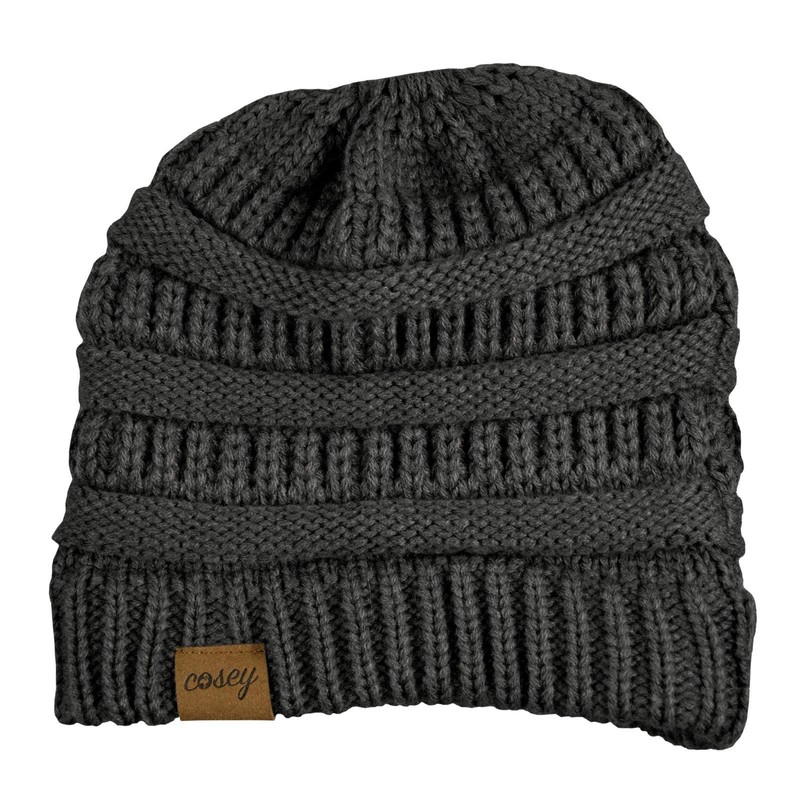 cosey - Knitted Winter Hat - Ponytail Hat with Braid Hole for Women and Girls in Various Designs, black, Unit size