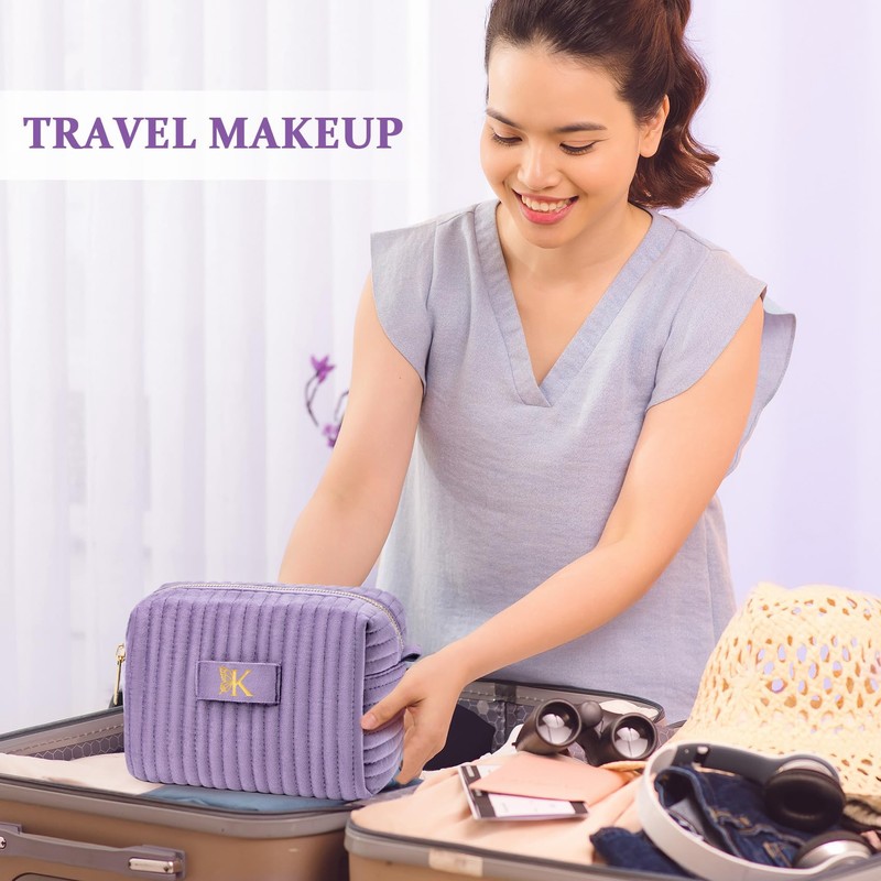 COSHAYSOO Purple Initial Makeup Bag Girly Gifts for Women Teen Girl Unique Pe...