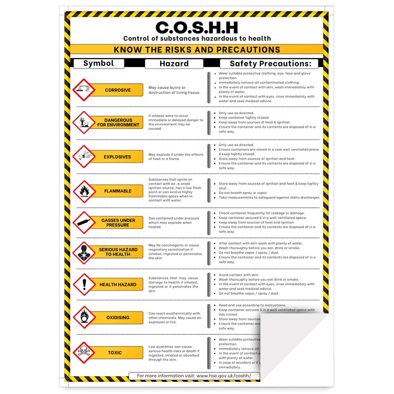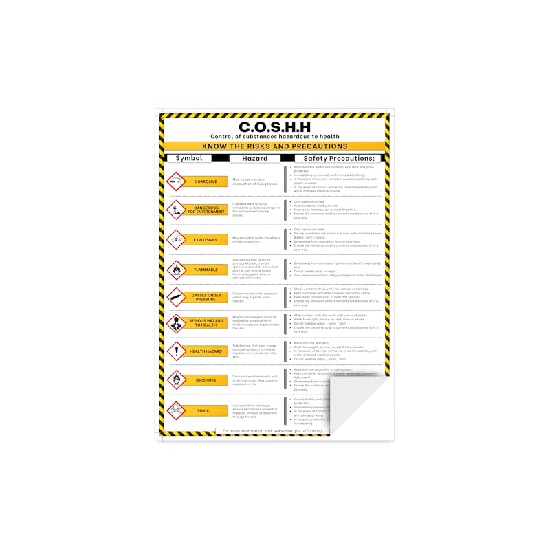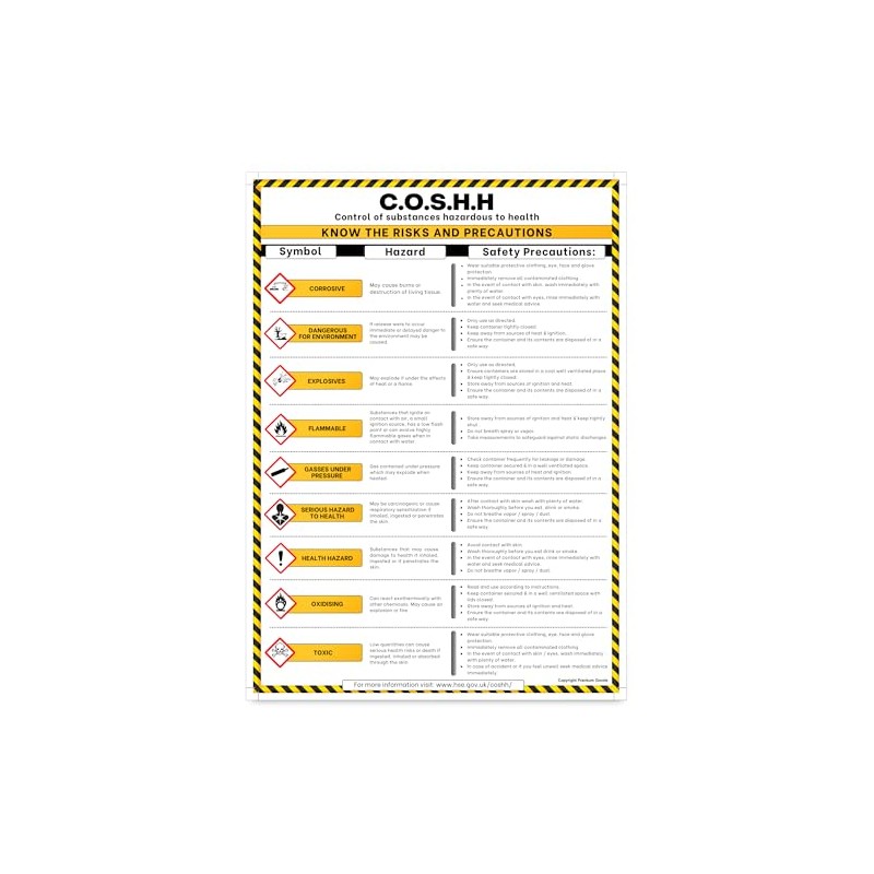 COSHH STICKER Poster – A4 Sign - Health & Safety at Work Wall Chart – Hazard Symbols – Workplace Safety Sign – HSE Compliance Training Aid for UK Businesses
