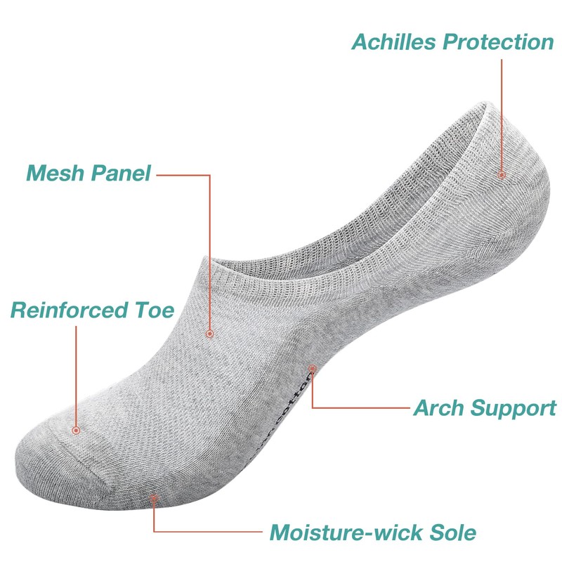 - The invisible casual socks have 5 no slip silicone grips on the heels and an enhanced cuff to keep them in place, so they never slip and strike the well balance between breathability — meaning your feet won't overheat or blister in these