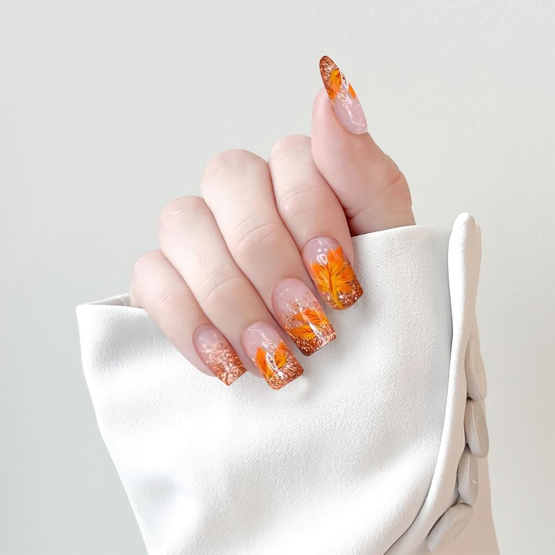 - Unique Autumn Design These fall press on nails feature an elegant maple leaf design, which will add a stylish touch to your look. Perfect for the fall season to highlight your nails and accentuate your style