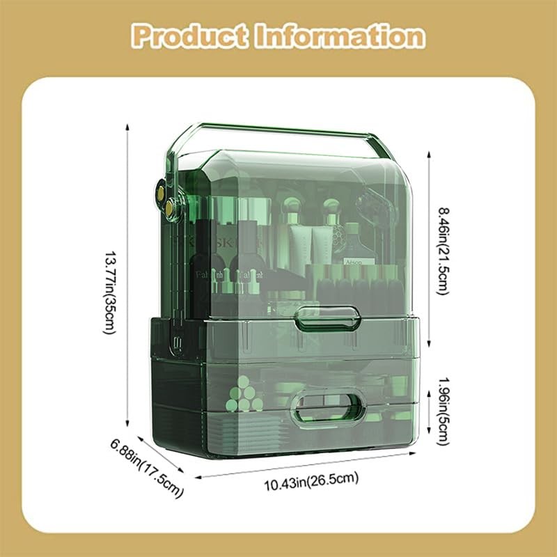 Cosmetic Organiser, Portable Make Up Organiser, Transparent Acrylic Beauty Organiser, Dustproof Makeup Storage Box with Lid Drawers (Transparent Green/01)