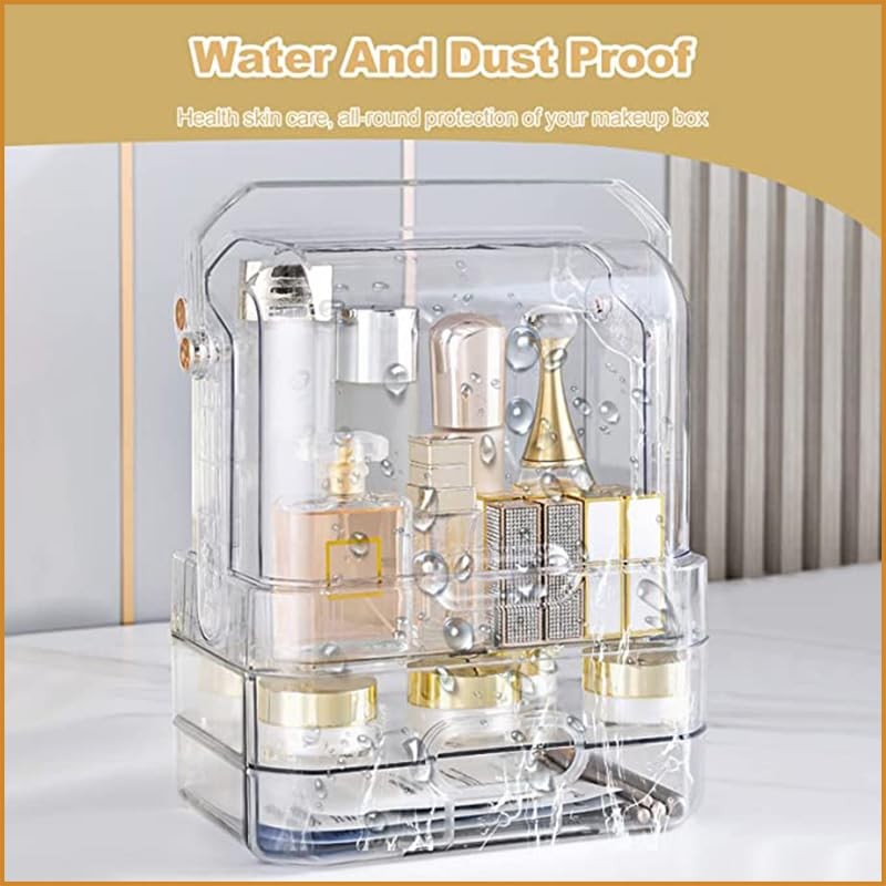 - Elegant modern design: this dust-free makeup organiser with lid is unique and elegant and makes your dressing table or bathroom more elegant and tidy. The crystal clear top cover allows you to find what you want at a glance and is comfortable handle, smooth drawer cabinet handles, fixed hand strap, love to every design detail, understated luxury, you deserve it!