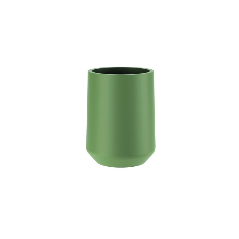 - Design: Rounded. This counter cup has a contemporary, rounded appearance, making it a neat and balanced choice for the bathroom.